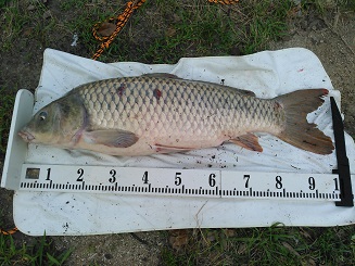 豪雨の後、梅雨があけたら猛暑。 いつもながら金曜日の仕事終了後、大川へ行きましたが、 暑すぎて車で待機はできず途中で断念。 日曜日、場所を変えてテントで待つことにしました。 17:00現場入り、軽くフィーディングして19;00投入。 この日は少し風があったのでテントで待つのも少しは楽。 20:45 センサーON! (トゥッテイフルーティ20mm+パイナップルPOPUP) ドラグを強めにしていましたが、ジー、ジーとラインが出ている。 急いで竿に向かい合わせると上流へ走っている橋桁の方だ。 止めようとドラグを締めるも止まらない。 ・・・ 掛かりに入られた感触。 バラシ。 残念、大きかったかもしれない。 その後、全くアタリなし。 日が明けてくるタイミングで、20mmシングルに変更。 7:00 竿先をボーっと見ているとモジモジ そしてドラグを強く締めているのにジーとラインが出る。 遅れてサンサーがON! かなり早く竿に付いたつもりが、 またラインがかなり出されている。しかも橋桁に向かっている。 今度はなんとか止まった。 魚も疲れたようで ある程度、引き寄せると大人しくなった。 97cm(トゥッテイフルーティ20mm) 寸たらずだったが、 いくら大川でもこのサイズは なかなか上がらないので嬉しい1本となった。 でも バラシた1本目はこの魚より 引きが強かったような感じがする。 ひょっとしたら? ↓ちょっと画像だとわかりにくいですが、 尾の上の部分が97cmラインになります。 PR |