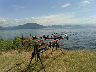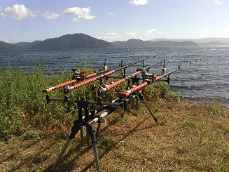 ちょっと長めの夏休みなので湖西への遠征を計画。 KTさん、IRさんも琵琶湖へ釣りに行く予定だったので ご一緒させていただきました。 8月13日、14日 事前情報でボイリーを喰うかどうかわからないと いうことでしたが、とりあえずボイリーも投入。 しかし初日のお昼頃、IRさんが龍王で60台を釣り上げたので 龍王+クレデンスコーンに変更しダンゴ中心の釣りにしました。 底は薄いウィード状態で所々、 小石底または砂地といった感じ。 釣り始めは ここのところ大川での短竿釣り中心だったので、 久しぶりの長竿での投入でトラブル続出。 早めの餌交換で夕方から、 ようやく思うように投げられるようになりました。 底の状態が良いところに餌が 入ればアタルといった感じで 夕方からアタリだして 大物は上がりませんでしたが、 ①50前後 ②50前後 ③ヘラブナ ④バラシ ⑤ニゴイ ⑥60台 ⑦50前後 という結果で終了。 しかし湖西は本当に良いところですね。 水も綺麗。 魚も綺麗。 なんといってもロケーションが良い! この暑い時期は子供のように水につかりながら 釣りもできる。 最高の2日間となりました。 ↓ベイトタックル×3 ↓綺麗な湖西の鯉 ↓このサイズがよく釣れました。 8月17日、18日 本当は大川に釣りに行く予定でしたが、 早くも湖西が忘れられない。 ということで、 同じ場所に単独で釣りに行きました。 前回はダンゴ中心でしたが、 少しはボイリーも入れたので、 ボイリー用のスピニングタックル×2、 ダンゴ用のベイトタックル×2 でスタート。 しかし、なかなかあたらない。 日が落ちてから、 やっとダンゴにアタリましたが ヘラブナと35cmの子ゴイ。 ここで 思い切ってすべてボイリーに変更。 アタリが遠い。 次の日のお昼すぎ やっとまともなアタリ、感触! しかし錘が岩に噛んでしまいバラシ。 前回それなりに餌を入れているので ひょっとしたら、 それなりのサイズが回ってくるかもしれない。 と甘い考えもありましたがこれで終了。 やはり琵琶湖は そう簡単ではありません。 なにもかもスケールの大きい琵琶湖。 1週間、1ヶ月泊まり込んで釣りをするということも 理解できます。 自分にはいいとこ2泊3日が 精一杯ですが、また挑戦したいと思います。 ↓スピニングタックル×2/ベイトタックル×2 PR |