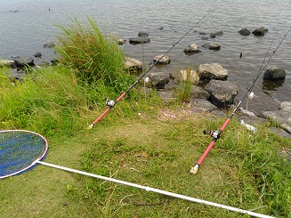 6/17(土) 5:15~12:30 淀川鳥飼大橋周辺の竿を出しやすいポイントと 水上バイクの走行可能エリアが重なるため、 そのエリアの最上流で竿を出すことにした。 あまり良いポイントでないので、 本当はもう少し上流で竿を出したいのだが、 草木を刈らないと竿を出せないので仕方がない。 まず前日の朝、ご飯4合フィーディング。 当日、5:15第1投。 今回も70分程度で餌替え。 3投目から7~8m立ち込んで少し遠投に変更。 そして12:00頃やっとアタリ、79cm。 とりあえず、ご飯で結果を出せたので一安心。 明日に期待して終了。 6/18(日) 5:20~13:00 朝、ポイントに着いてすぐご飯2合フィーディング。 5:20今日は第1投目から遠投。 6:00過ぎにアタリ、60cmぐらい。 陸に上げて計測することもないので、 浅瀬でフックを外しリリース。 この段階ではあと2回ぐらいアタルだろうと 思っていましたが、 その後、全くアタリが無く暑さに負けて終了。 来週から本格的に雨となりそうなので もう1本、欲しいところでしたが、 そう簡単には行きませんね。 |