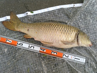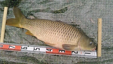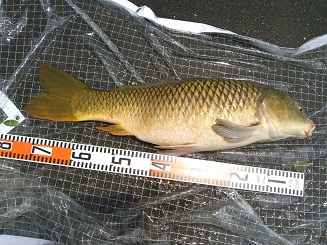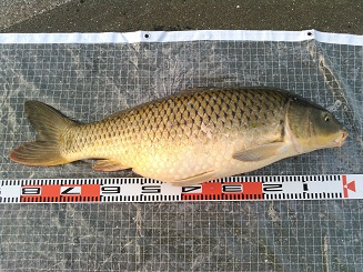 しばらくの間、ボイリーを封印、禁じ手とし ボイリーを使わない鯉釣りをして行くことにしました。 今回、使う餌は淀川では定番の ご飯(白米) ボイリーでちゃんとした鯉釣りをする前の去年、 釣れない日々を送っていたこの餌に再挑戦です。 6/10(土) 5:15~10:30 淀川の鳥飼大橋周辺では6/15から 水上バイクが解禁になるため、 その前に鳥飼大橋下流の右岸ポイントに 入ってみることにしました。 前日の朝、ご飯6合フィーディング。 当日の朝5:15頃第1投、竿は2本。 70分ごとに餌替えとご飯ダンゴの投入を3回、 繰り返して、あとは2時間待ち。 さあこれからというときに、 車が入ってきて、このあたりの草刈り工事を行うという。 2日連続で入ろうと準備していただけに ちょっとショックでしたがこれは仕方がない。 1本の竿の仕掛けを回収していると、 もう1本の竿から一気にラインが引き出される。 しかもかなりの引き。 上げてみると口の外側に針が掛かっていました。 80ぐらいと思っていましたが75ぐらいかな。 今回はボーズを覚悟しましたがちょっとホッとしました。 終了後、余ったご飯を、 一昨年の冬よく入っていた左岸のポイントに撒き 次の日に備えました。 6/11(日) 5:20~12:30 朝、ポイントに着いてすぐご飯1合フィーディング 5:20頃第1投。 今日も70分ごとに餌替えとご飯ダンゴの投入を3回。 投入場所はちょっと沖なので、ダンゴ杓では 届かないのだが、できるだけ遠投。 この場所は、11:00~12:00頃に よく当りがあったので、11時前に2本とも餌替え。 そして1時間経過。 ダメかーと思った12:05ついにアタリ! 75cmぐらいですが元気な鯉でした。 ある意味思い通り1本とれたので、 満足しその竿を片付けることに。 すると残った竿のセンサーがON! しかしラインがでない、いやゆっくりたるんでいる。 カメか? とりあえず合わしてみると、ずっしり重い引き! この引きは大鯉(メス)の引き。 ついにやりました!ごつい腹の90cm。 満足の1本となり終了。 これからしばらくご飯で行きます! |