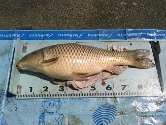 3年目突入の5/3から 鯉釣りの先輩達、KTさん、IRさんと 2泊3日の淀川キャンプを行ってきました。 まずは3日前の4/30に3人でフィーディング。 狭い場所ですが、かなり撒きました。 そして当日。 竿は1人2本の合計6本、 30mぐらいの範囲の中に竿6本並べます。 7:00に投入。 すぐにアタルと思っていましたが、 以外とアタリはちょっと遠く8:05に81cm。 それから順調にアタリだし、5本GETのバラシ1本。 しかし20:20頃、初めて色コイ(白)を釣り上げて、 喜んでいたら、そこから次の日の10:00までアタリなし。 やっと上げたのは91.5cm その間、ポンポン釣り上げていくご両人。 このキャンプ最大97.5cm(KTさん) 初めて見たマツサカ鯉(IRさん) スキルの差、引き出しの多さ、実力の差は歴然。 2日の夜からは KTさんの独壇場10連発。 終わって見れば、 3人で41本 淀川いであの成績は 5/3(水) ① 8:05 81cm(自家製ボイリー) ②12:05 89cm(自家製ボイリー・オキアミ味) ③14:15 81cm(自家製ボイリー・オキアミ味) ④15:40 フックが伸びてバラシ ⑤17:50 83cm(自家製ボイリー) ⑥20:20 色コイ・白75cm(マルキューミルキーミルキー) ⑦20:40 ラインを引き出すもフッキングせず 5/4(木) ⑧10:00 91.5cm(自家製ボイリー・オキアミ味) 終了 いつもであれば、 広いフィールド、そこにいる鯉達と自分との 戦いになりますが、 そこに 人 対 人 の要素が加わります。 来週の「第44回鯉釣り大会 in OSAKA」 に向けて良い経験、勉強になりました。 これからも頑張ります! PR |